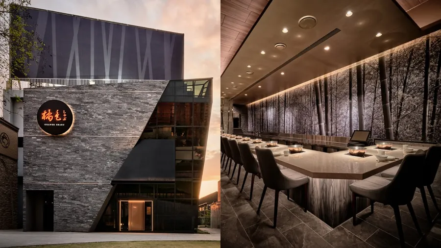 橘色涮涮屋再度插旗台中!品牌首家獨棟店鋪選址台中七期,由日本建築師丹下憲孝操刀空間,以日本竹庭茶屋為靈感,透過錯落金屬線條,呈現「竹林」意象。