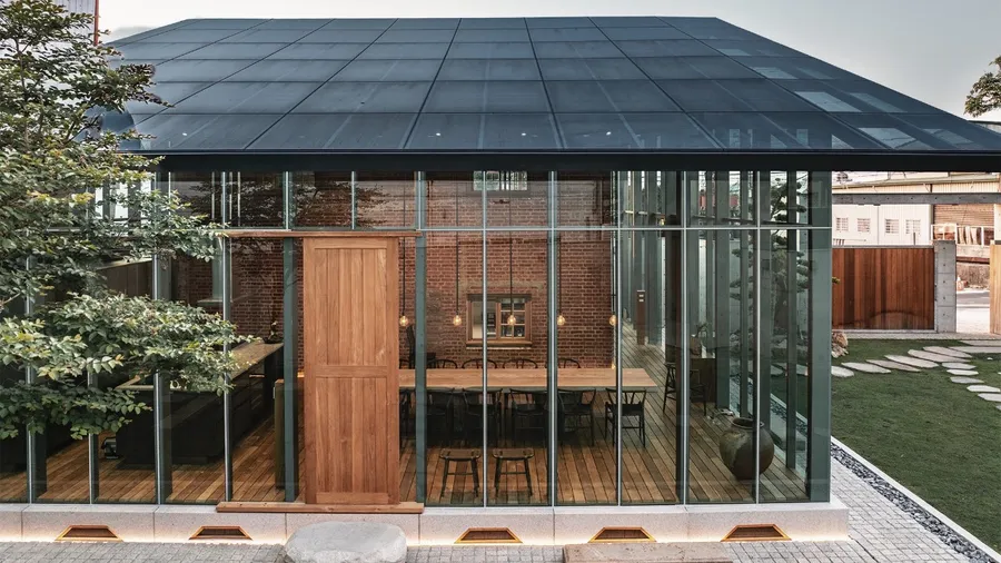 毛森江新作在高雄茄萣!以「屋中屋」概念打造白砂崙茶博館,在現代玻璃屋中放入紅磚古厝