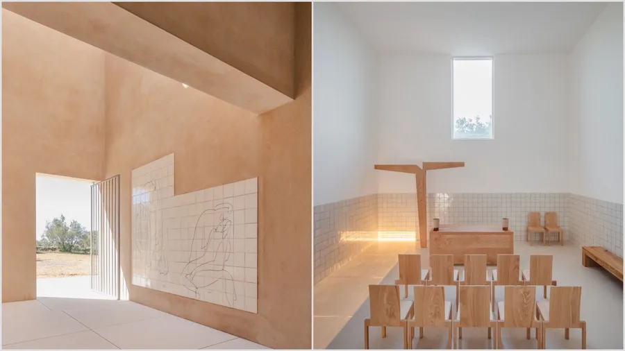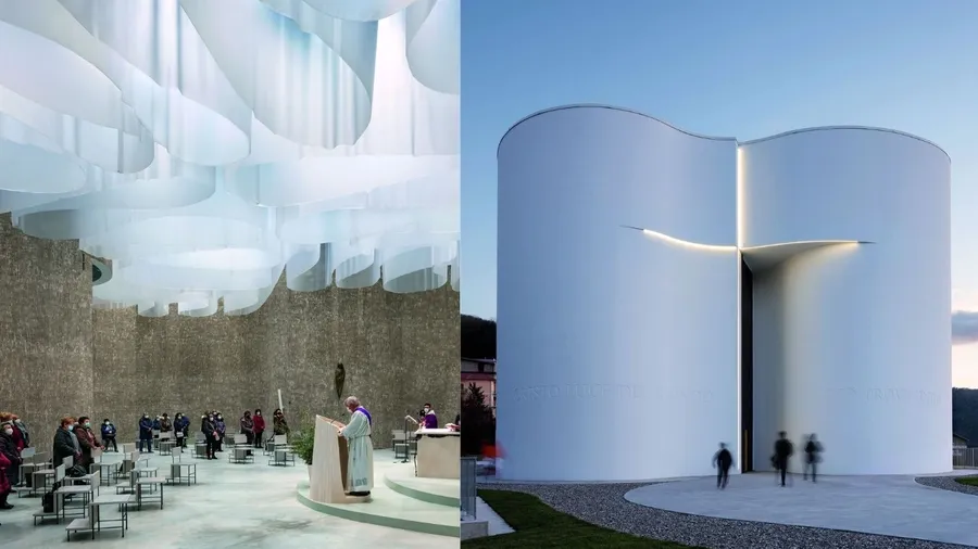 現代感十足的義大利教堂!建築造型猶如綻放花朵,垂掛織物透出微光增添寧靜氛圍