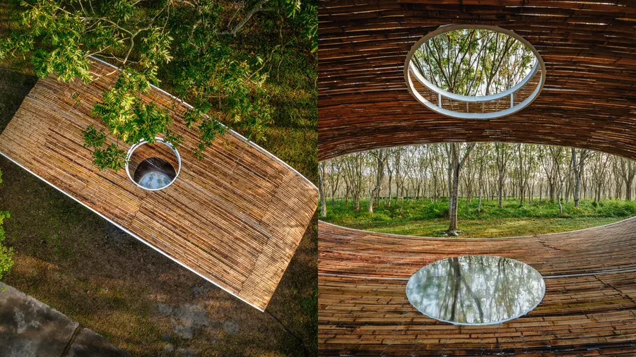 屏東林後四林平地森林園區「山、村共生」展覽登場!首件裝置藝術作品《納》亮相,禹禹藝術工作室以國產桂竹、刺竹及鐵件為材,細膩刻畫生命的留白與歲月的軌跡。
