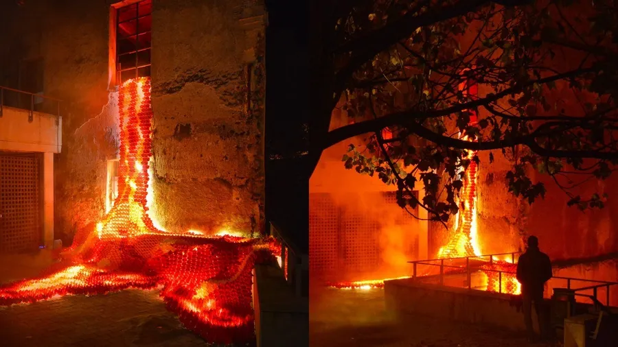 彷彿真的要燒起來了!光與火的慶典上,藝術家以「摺紙」打造逼真感十足的熔岩藝術裝置