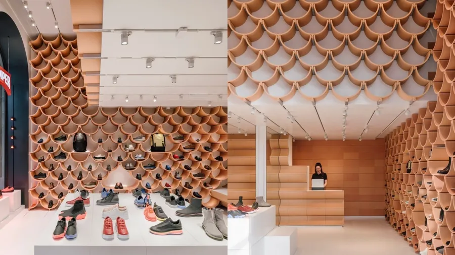 翻轉屋頂瓦片成展示台:隈研吾操刀Camper巴賽隆納新門市,以傳統建築材料連結在地