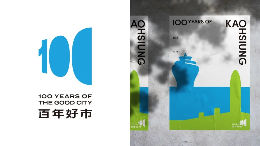 高雄設市百年紀念 Logo 亮相,有角職匠以數字 100,和翻轉 90 度的「高」字幾何結合,呈現城市的文化底蘊與港都風貌。